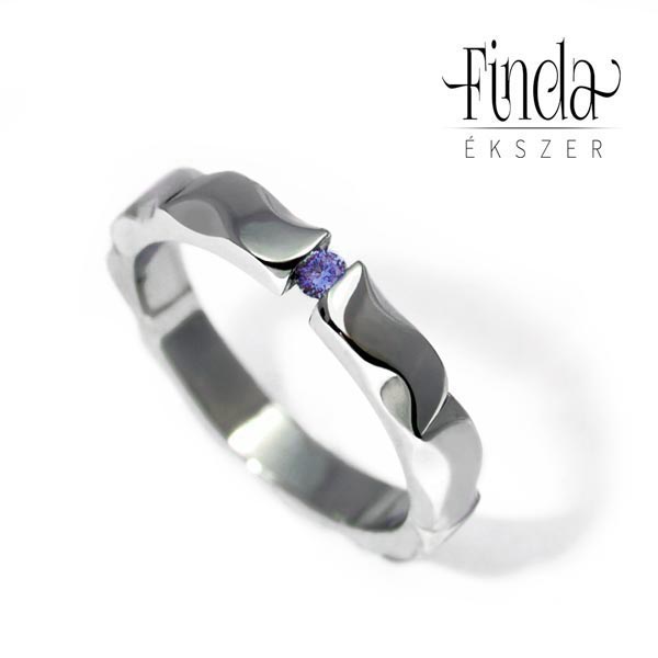 A gyűrű szélessége 3 mm, a női gyűrűben egy 2,5 mm átmérőjű tanzanit ragyog.