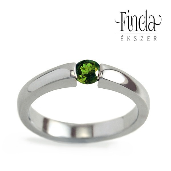 Minimal stílusú nemesacél gyűrű zöld turmalinnal. Semmi cicoma, csak letisztult egyszerű vonalak és a drágakő ragyogása. A gyűrű 3 mm széles, a kő 4 mm átmérőjű.