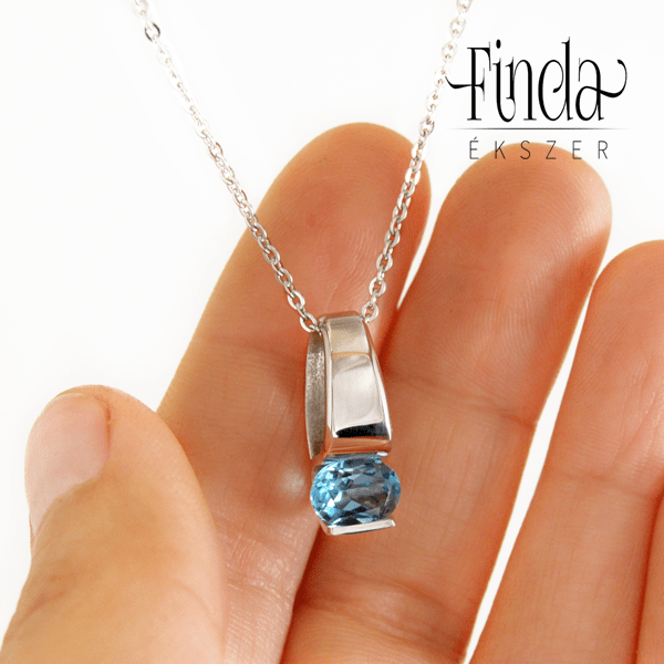 Elegáns, kézzel készült nemesacél medál ovális csiszolású kék topázzal.