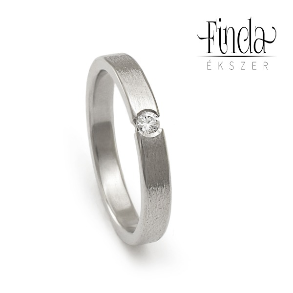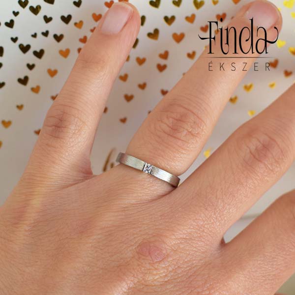 A gyűrű szélessége 3 mm, a női gyűrűben egy apró 2,25 mm átmérőjű fehér gyémánt ragyog.