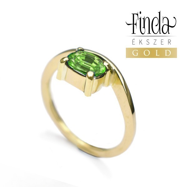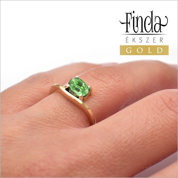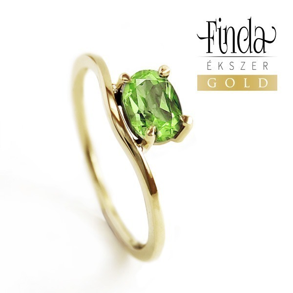Kézzel készült 14 karátos sárga arany eljegyzési gyűrű peridottal/olivinnel.