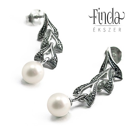 Ezüst fülbevaló fehér édesvízi tenyésztett gyöngyökkel, melyet egy 1900-as évek elején készült karkötő ihletett.