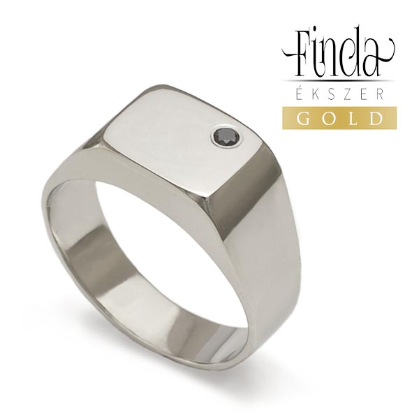 Vörösmarty 14 k fehérarany pecsétgyűrű fekete gyémánttal