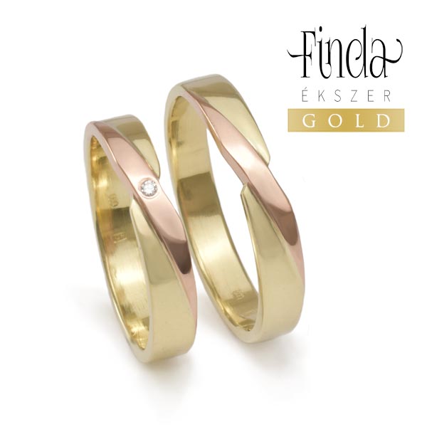 A képen látható karikagyűrűk 4 mm szélesek, 1 db 1,5 mm átmérőjű gyémánttal. Szívesen elkészítem más színű aranyból is, más szélességekkel is.